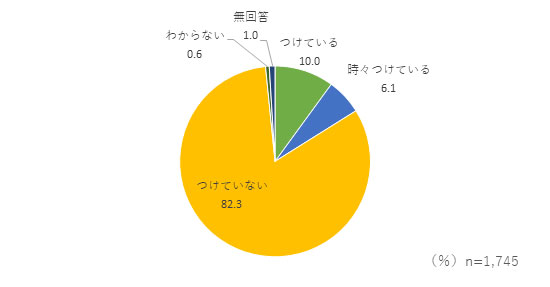 おこづかい帳の記帳は、「つけている」(10.0%)と「時々つけている」(6.1%)を合わせた「つけている(計)」は16.1%と少数で、「つけていない」(82.3%)が8割以上を占めている。