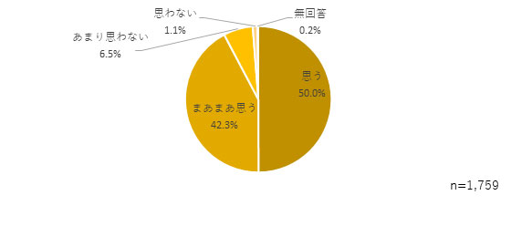 親子が一緒に学ぶ機会の重要性は、「思う」が50.0%、「まあまあ思う」が42.3%で、両方を合わせた「思う(計)」(92.3%)は9割以上を占める。